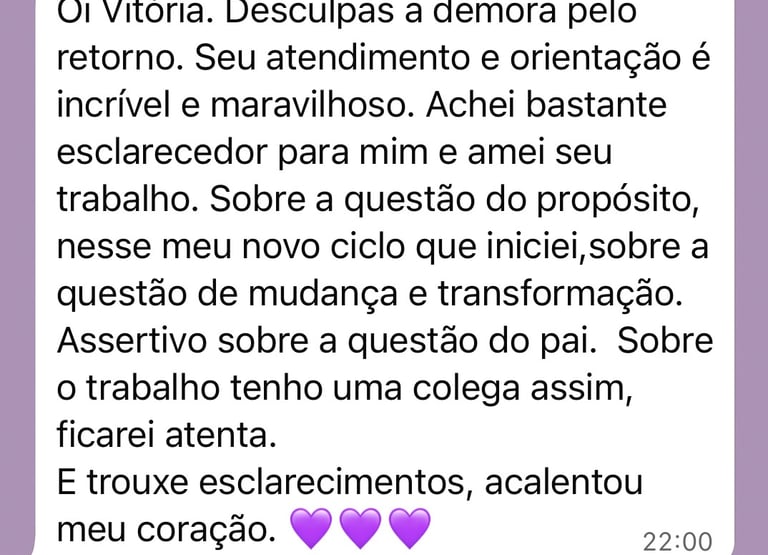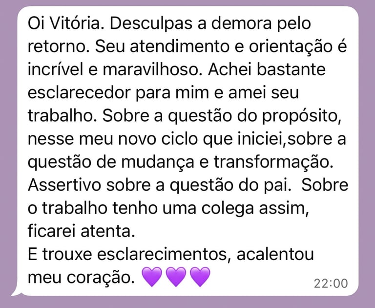 "Achei a leitura muito coerente com o que estou vivendo. Na verdade ela esclareceu algumas coisas porque o jogo representa muito bem as minhas dúvidas e energias do momento (...)